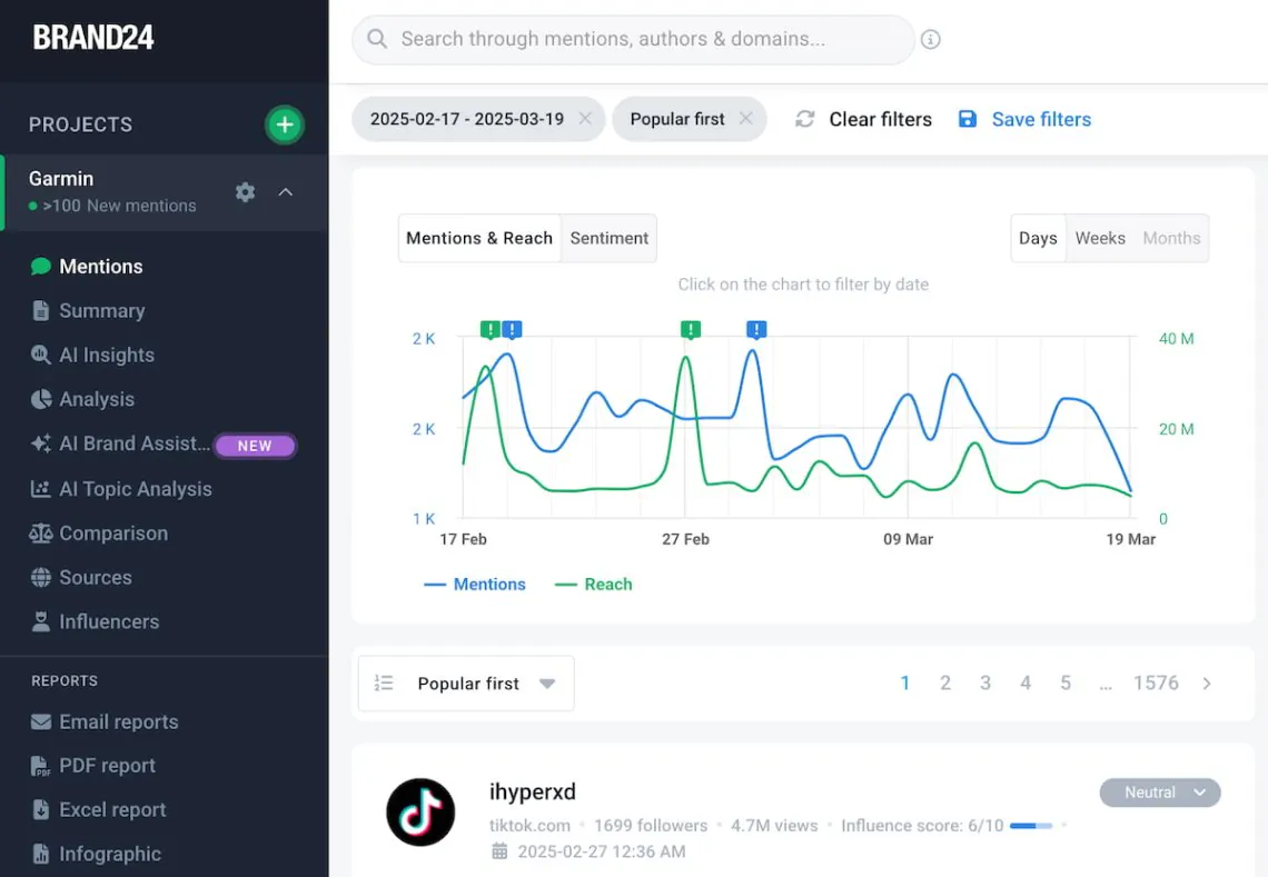 Additionally, Brand24 allows you to create comprehensive reports that provide a clear snapshot of your brand performance.